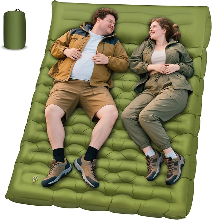 - 【100% Satisfaction Guarantee】: The package comes with 1 double sleeping pad, 1 storage bag, 1 instruction manual, and 1 repair allowance; You can get all the camping accessories you need; If you have any questions, please feel free to contact us at any time. We hope you are completely satisfied with this portable sleeping mat. Having it will bring more joy to your adventure. We are committed to providing our customers with the best experience.