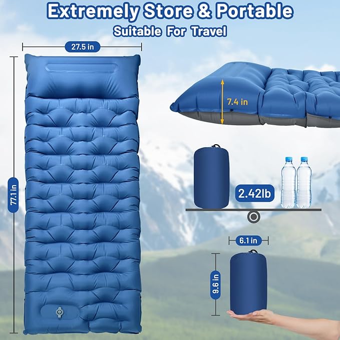 - Lightweight & Portable: The ultralight sleeping pad can be folded into a compact 9.6 * 6.1 * 6.1 inch size, weighing only 2.42 pounds, and can easily fit into a backpack or waist bag. It is perfect for camping, hiking, backpacking, traveling, picnicking, rock climbing, car camping, or other outdoor activities such as camping in a tent. If there are stains or dust on the surface, simply wipe them off with a damp cloth.