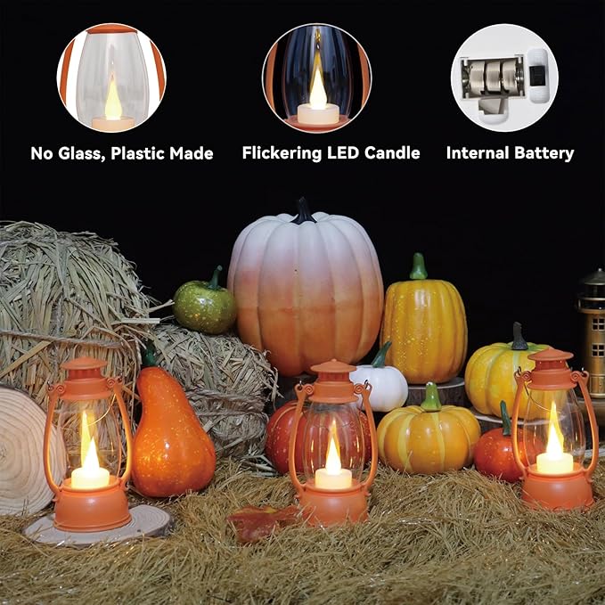 - [Flameless Safety for Halloween Decorations for Home] Shatterproof PVC + rust-resistant hooks ensure these mini lanterns decorative withstand kids, pets, and outdoor use (light rain). Flameless LED eliminates fire risks – perfect for halloween lantern displays, farmhouse christmas decor, or western home decor