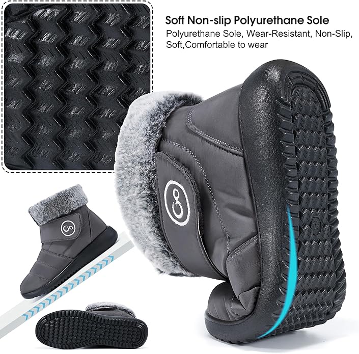 - 💖 【ANTI-SLIP POLYURETHANE SOLE】These boots for women waterproof crafted with durable and rigid polyurethane soles in addition to a notch on the bottom for a no-slip solid grip, they offer stable support when you are striding on any humid surfaces without the fear of dropping off. These womens boots are ultra-wear resistant, non-slip, resilient, shockproof; comfortable for long wear and walking.Great winter boots for women.