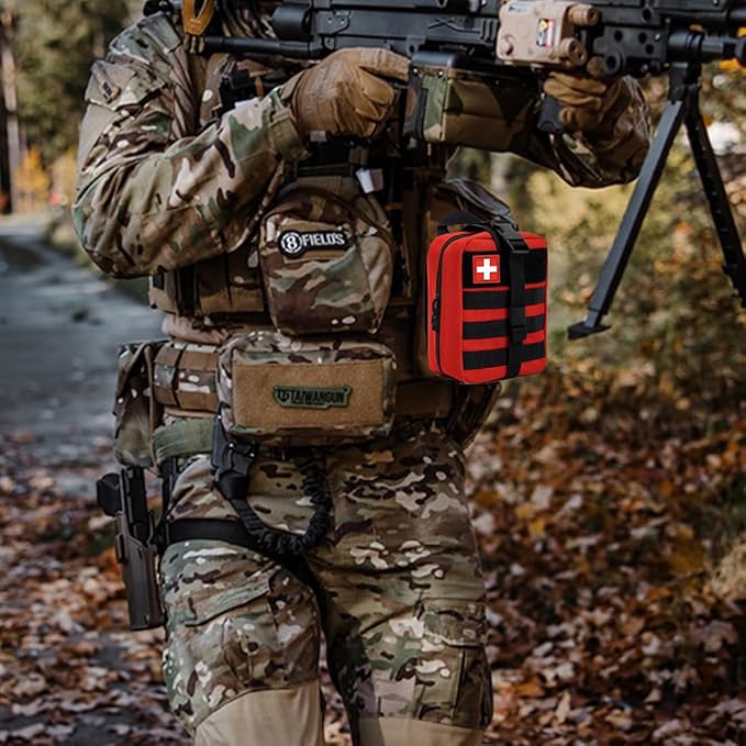 IFAK Kit Trauma Kit Military Medical First Aid Kits Bleeding Contral Emergency Survival Bug Out Bag for Camping Gear Supplies Hiking (Red)