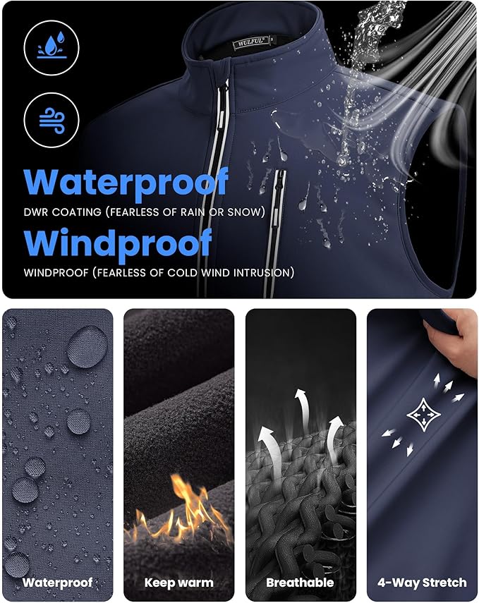 WULFUL Men's Windproof Lightweight Golf Vest Outerwear with Pockets, Softshell Sleeveless Jacket for Travel Hiking Running