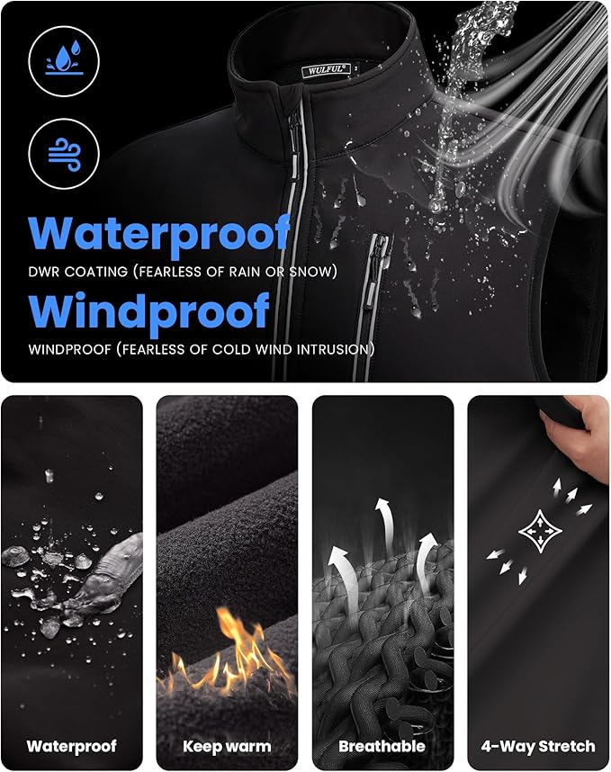 WULFUL Men's Windproof Lightweight Golf Vest Outerwear with Pockets, Softshell Sleeveless Jacket for Travel Hiking Running