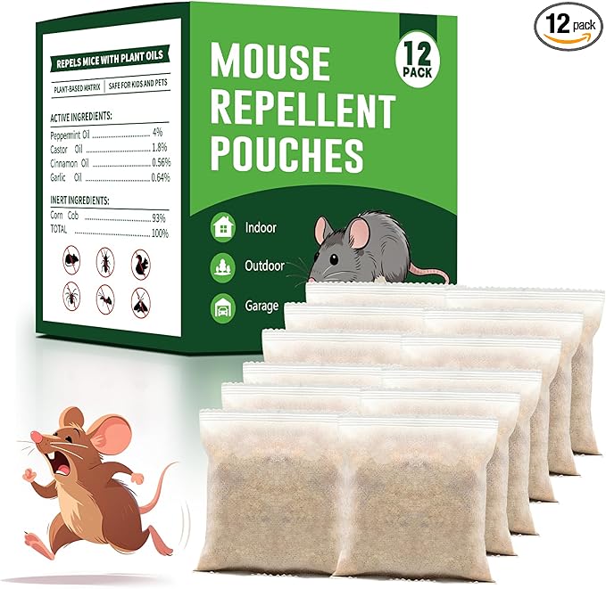 - User-Friendly Application: Tear open the sealed package, and position the mice repellent pouches in areas where rodents frequently appear. It will then provide all-round protection for your property, keeping rodents away from your home.
