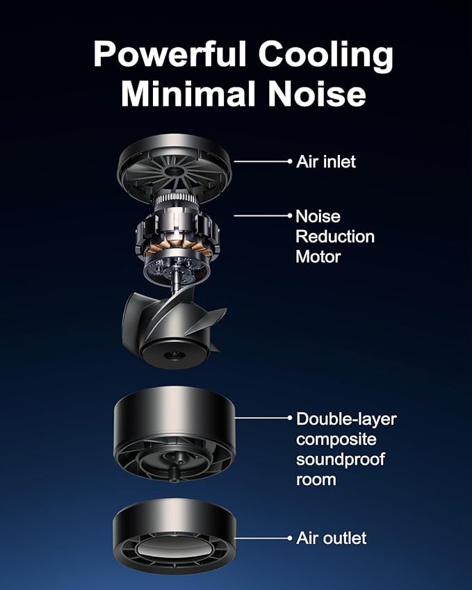 - 100-Speed Turbo Airflow – Customize your cooling from whisper-soft breeze to intense airflow with 100 wind levels and up to 50,000RPM rotation speed. You can adjust the turbo fan to meet your specific cooling needs in any situation.