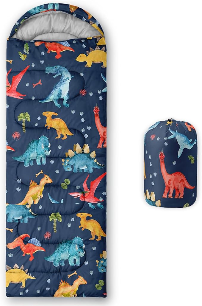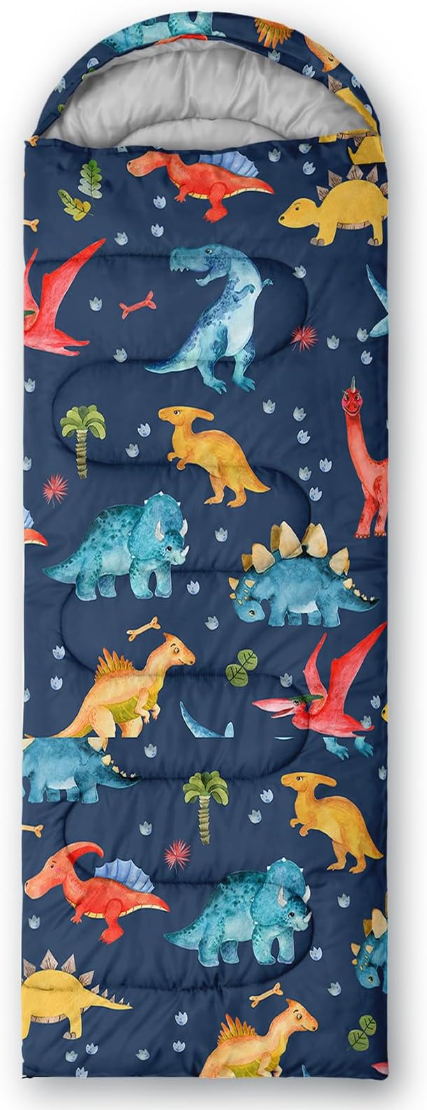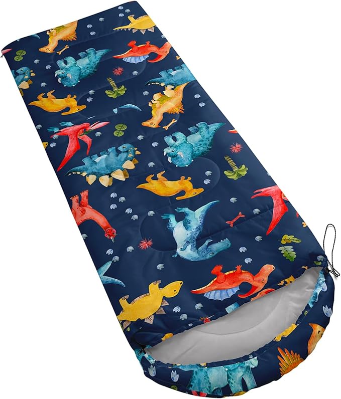 - 【Fits For 3 Seasons】: Size - 31 by 90 inches (W x D). Our navy blue dinosaur sleeping bag can be used in 3 seasons with a design temperature of 32℉-77℉(0℃-25℃). These Sleeping bags also have a weather resistant waterproof design to keep you warm and prevent you from any dampness.