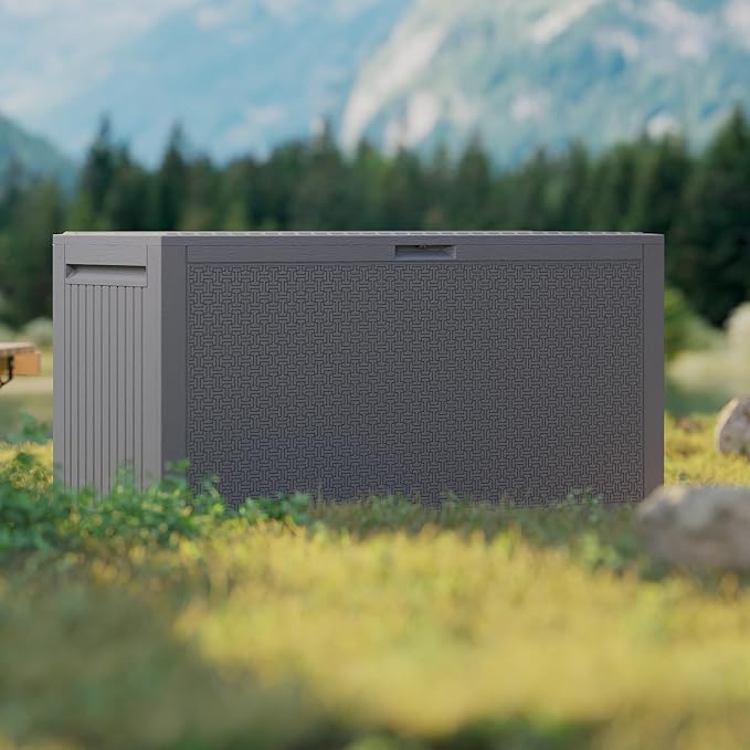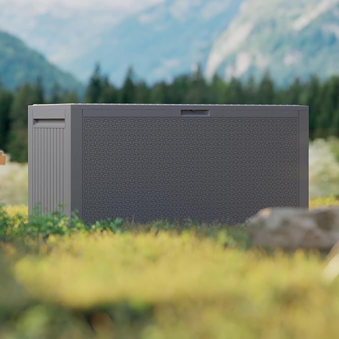 - Rattan-Style Design: Our deck box combines the appeal of Rattan with the durability of resin, providing an elegant and long-lasting storage solution for your outdoor space.