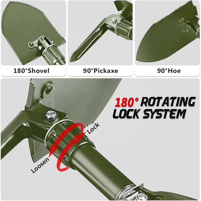 - Versatility, one shovel for many uses: As an emergency life-saving multi-purpose shovel, the Apidgrowth not only has the digging capabilities of a traditional shovel, but also integrates multi-tool features such as sawing and cutting. Whether it's cutting branches, clearing paths or serving as a self-defense tool in emergencies, it's at home. Its rugged material ensures efficient use in a variety of complex environments.