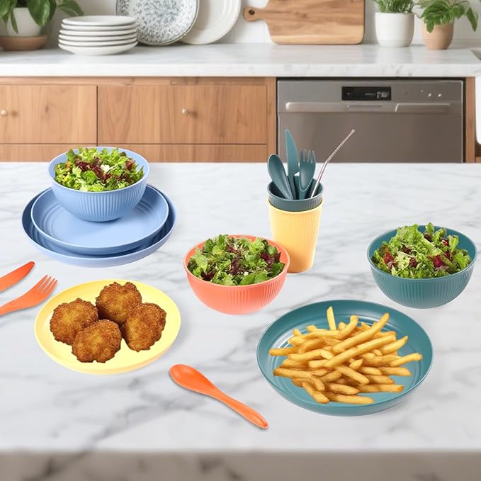 - Versatile for All Dining Needs: Wheat straw dinnerware set is perfect for family meals, picnics and packed lunches. This set is ideal for any dining need, offering convenience and style wherever you go