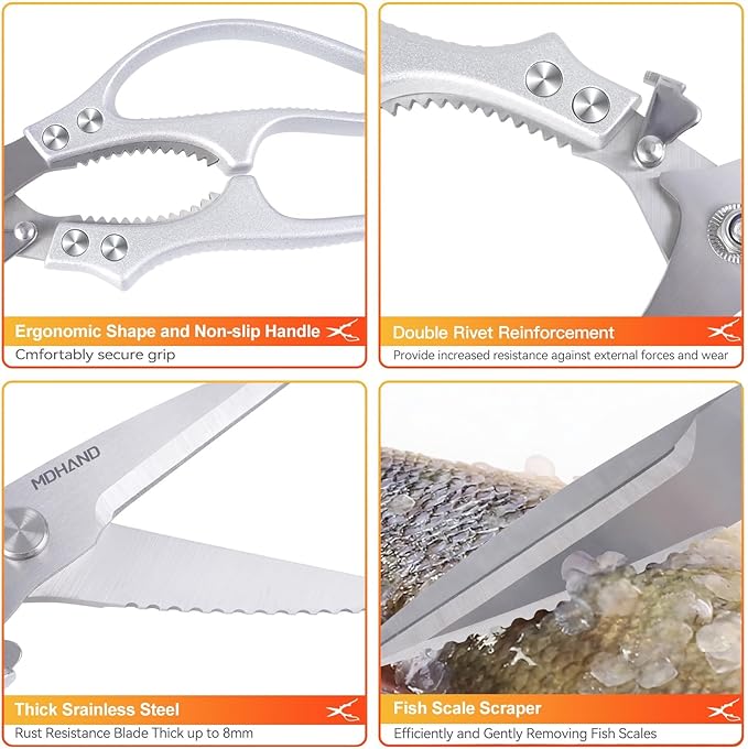 MDHAND Heavy Duty Poultry Shears, Kitchen Food Scissors All Purpose for Meat Cutting, Chicken Fish Fruit Vegetables, Dishwasher Safe Kitchen Shears with Anti-Slip Handle & Safety Lock, Spring Loaded