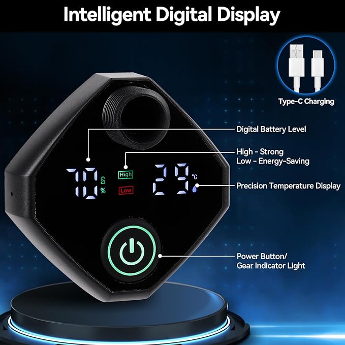 - LED Display with Temperature and Battery Readouts: Stay safe with the LED display showing current water temperature and battery level. Color-coded indicators help avoid overheating, adding peace of mind to every portable shower for camping or travel.