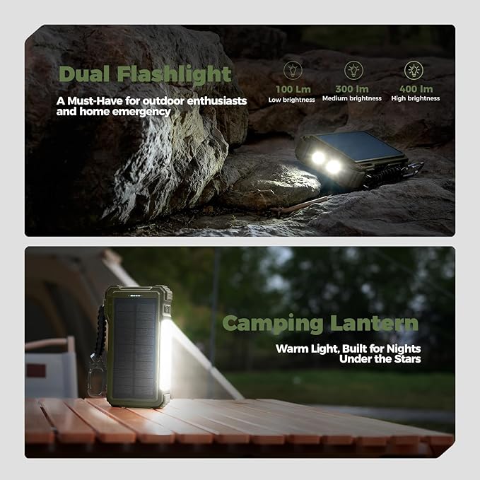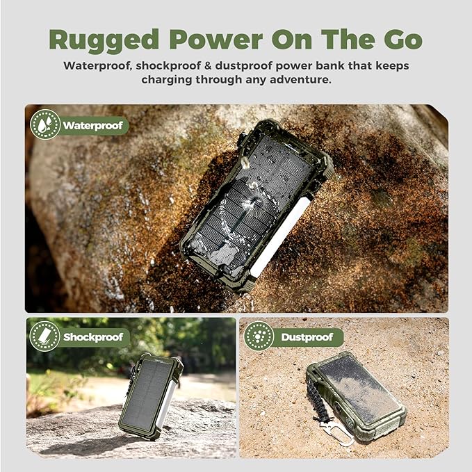 - Durable And Adventure-Ready: Built to withstand anything nature throws at it, the BLAVOR solar charger power bank is a true warrior. Its flame retardant ABS+PC shell and waterproof silicone protection make it waterproof, shockproof, and dustproof, ensuring it can handle extreme conditions with ease. No matter where your adventures take you, this charger is up for the challenge
