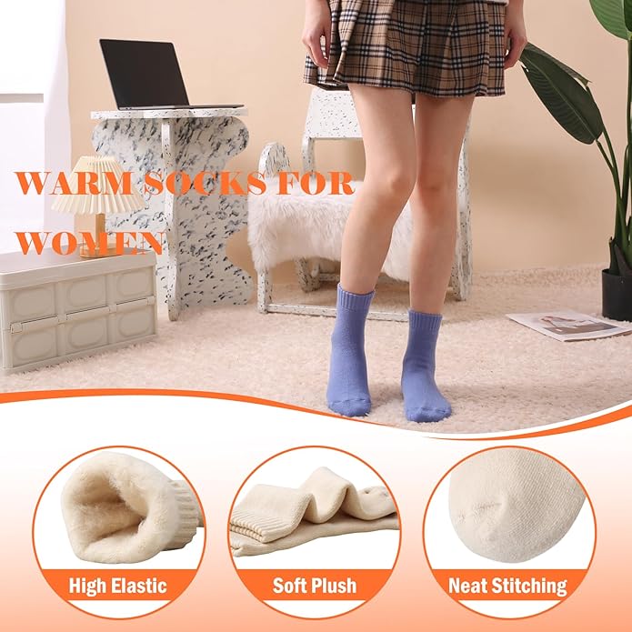 - 【Comfortable & Lightweight, Relaxed Feet】These winter socks for women are made from 70% acrylic, 28% polyester, and 2% rubber, with thick layers and warm brushed inner that’s keep your feet more comfortable and warm. Even in freezing weather at outdoor ,they still can lock in deep warmth. Besides, they’re super lightweight and you won’t feel any heaviness, that making them perfect for winter hiking, traveling, skiing, or running.