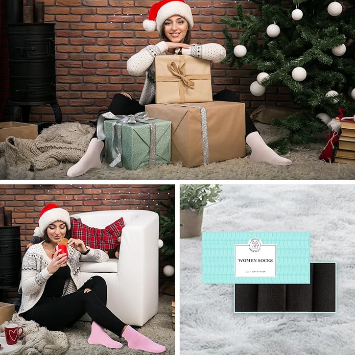 - 【4 Pairs Thermal Socks for Women】Your style is defined by you! HUGSWEET heated socks are designed for women, style and comfort perfectly. With multiple color combinations to choose, these 4 pairs of solid-color slipper socks let you mix and match effortlessly for any outfit.