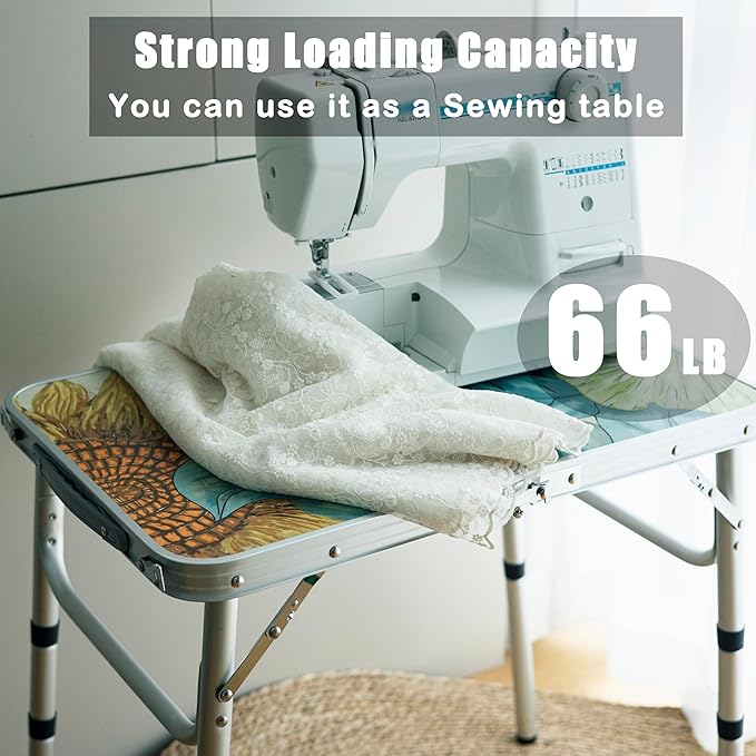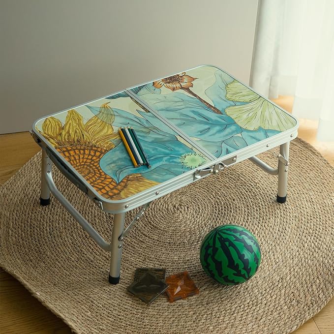 Small Folding Camping Table, 2ft Portable Picnic Table Aluminum 24" x 16" Folding Table, 3 Adjustable Heights Portable Lightweight Table Dining Table for RV, Picnic, Beach (Sunflower)