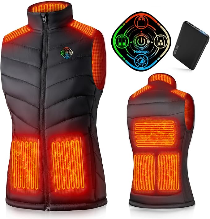 • Upgraded 5-in-1 smart controller - our heated vest for women rechargeable, equipped with 3 heating levels (149°F-131°F-113°F) and 3 independent control zones (neck and shoulders, abdomen, back and waist), allowing you to customize your warmth for any weather or environment; Simple operation, one-touch to enjoy your unique warmth with our warming vest for women heated ; Unique light-off design allows you to perfectly blend into any environment, whether it is outdoors or daily work
