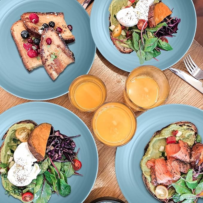 Wheat Straw Plates - 10 Inch Unbreakable Deep Dinner Plate Set of 8 - Dishwasher & Microwave Safe Plastic Plates Reusable - Lightweight Plate for Kitchen,Outdoor, RV. (Light Blue)