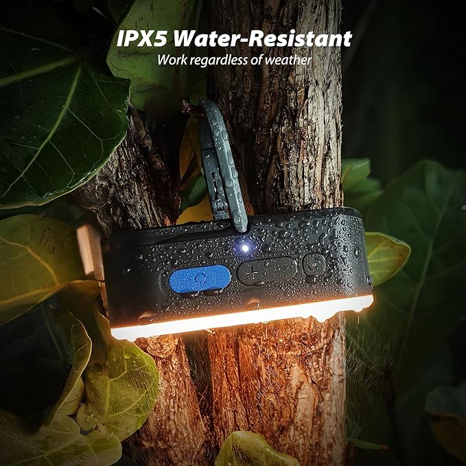 - 【IPX5 Waterproof & Durable】: Our area light with IPX5 waterproof rating, this camping light resists splashes, rain, and dew, making it reliable for outdoor activities.Crafted from ABS and aluminum alloy, it boasts exceptional durability and sturdiness. The materials resist impacts, scratches, and wear, while the alloy reinforces structural strength—withstanding drops and harsh use.