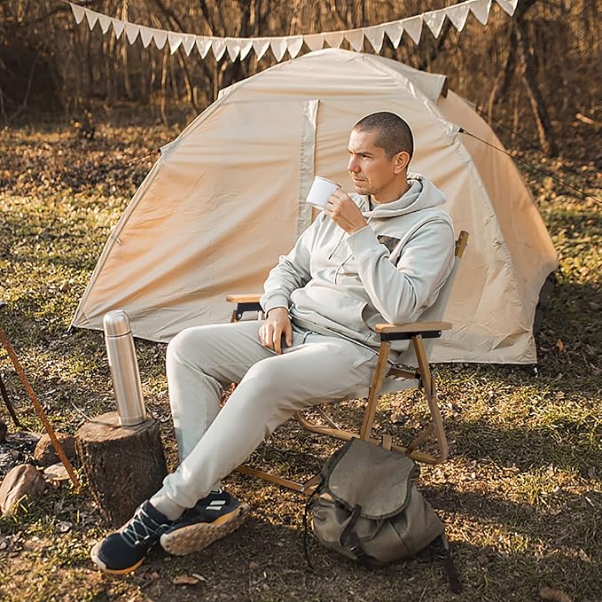 - 【COMFORTABLE DESIGN】Ergonomic back and armrest is designed to provide you comfort and relax even if you sit in the camping chair for a long time. Large seat area provide comfort, which is large enough for tall and heavy people
