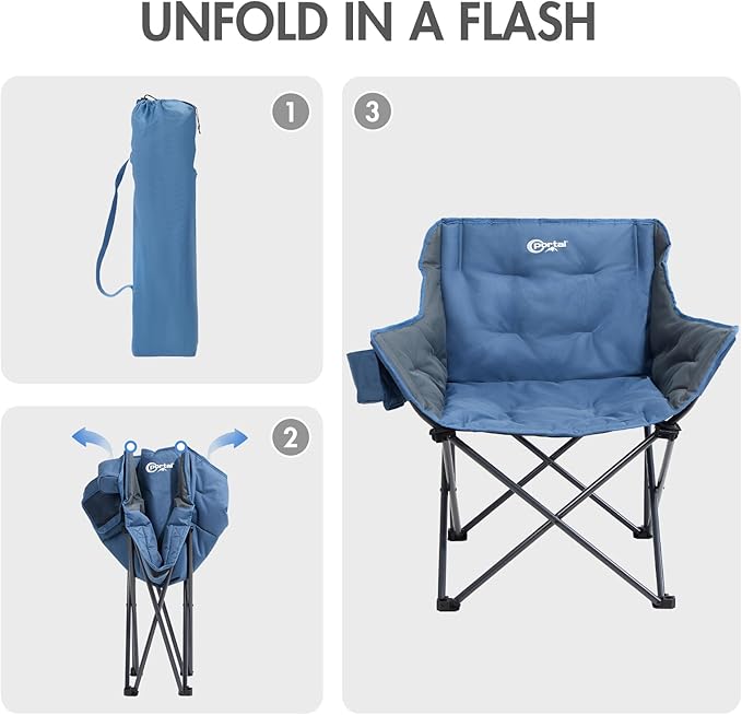 - Spacious & Comfortable Seating: Relax with 21" of seat width and 32" armrests, giving you extra room for camping, fishing, tailgating, or backyard gatherings