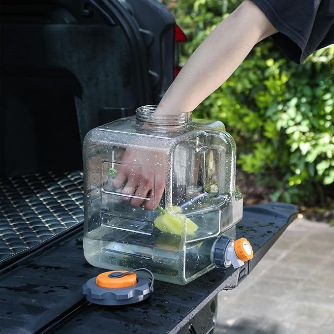 2.11-5.28 Gallon Water Jug, Camping Water Container with Spigot, No Leakage Water Tank Compatible with Electric Water Pumps, Water Bucket for Emergency Outdoor Hiking Picnic