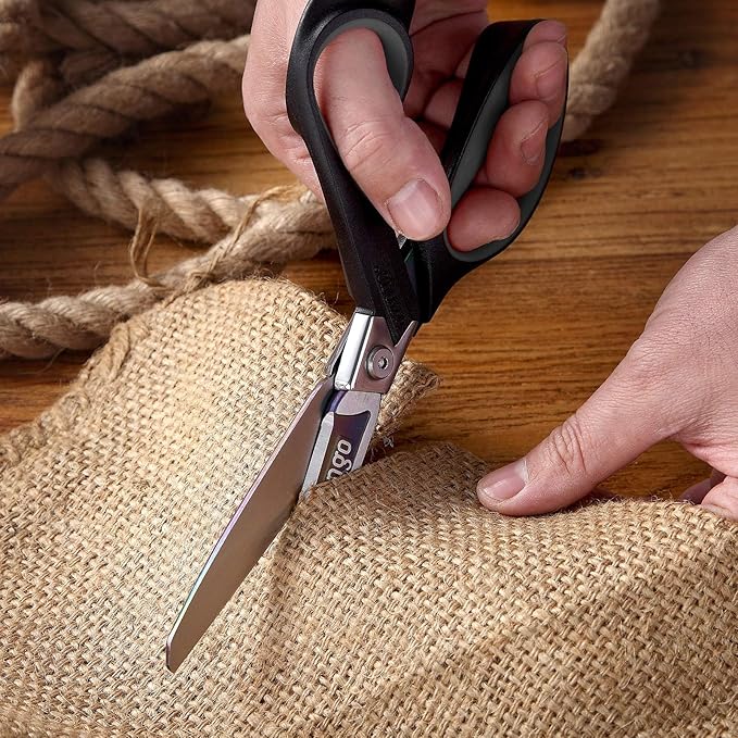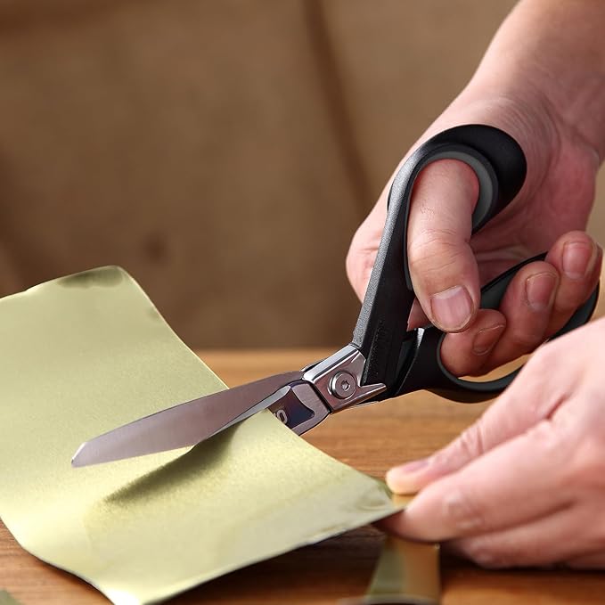 - EXTREME SHARPNESS & MULTIFUNCTIONALITY: These scissors are constructed with professional-grade high-carbon stainless steel, boasting higher hardness for anti-fracture durability and exceptional sharpness compared to ordinary scissors. The triple-density stainless steel blades, forged for heavy-duty use, effortlessly tackle a wide range of materials—rope, twine, plastic boards, wrapping paper, plant mesh, tin foil plates, fabric, cloth, quilting, leather, and more—delivering smooth, precise cuts.