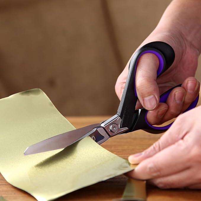 - ULTRA-SHARP & VERSATILE: Crafted from premium high-carbon stainless steel, these scissors feature superior hardness for exceptional durability—resistant to fracturing and sharper than standard shears. The triple-layer stainless steel construction, forged through a heavy-duty process, ensures effortless cutting across diverse materials, including rope, twine, plastic sheets, wrapping paper, plant nets, aluminum foil trays, fabric, cloth, quilting, leather, and more.