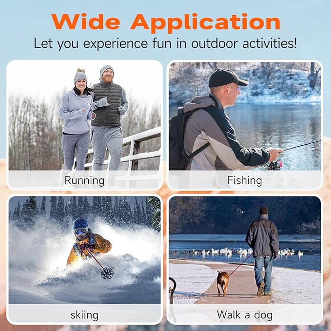 • [SMART 5-IN-1 BUTTON] :Features 3 adjustable heat levels (149°F, 131°F, 113°F) and 3 independent zones. One-touch control lets you adjust warmth easily, even with gloves. Discreet light-off design allows you to stay heated without the glow—ideal for night work, hunting, or outdoor activities.
