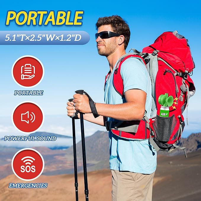 - 【Powerful Sound Blasts】Make a loud, and powerful sound,130BD air horn can be heard from a 1/2 mile away,Helps you cope with all kinds of emergencies,Ideal for every boat emergency kit