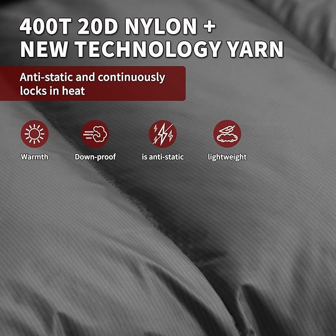 - Upgraded high-tech lining: The lining of adult sleeping bags has been upgraded and new technology silk threads have been added to continuously lock in heat and improve warmth retention. The exterior of the backpack sleeping bag is made of 400T 20D nylon, which is durable, tear-resistant, soft and breathable, and has anti-static function. It can provide you with the most comfortable sleeping environment in complex environments. Suitable for camping, backpacking and emergency escape.