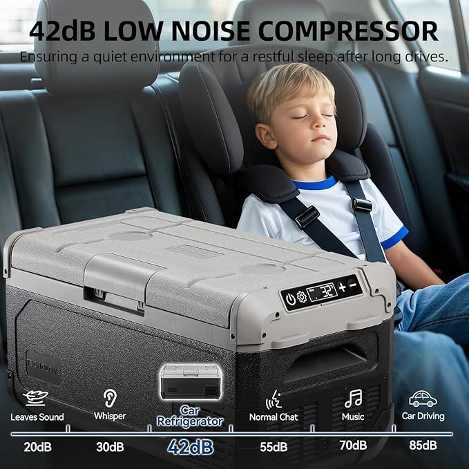 - Ultra-Rapid Chill & Freeze: Equipped with a high-performance compressor and an aerospace-grade aluminum blown expansion evaporator for superior heat transfer and exceptional cooling efficiency, it plunges from room temperature (68°F) to 32°F in 15 min and down to -4°F in 50 min – no ice ever needed! Enjoy ice-cold drinks or frozen goods faster than ever on the road.