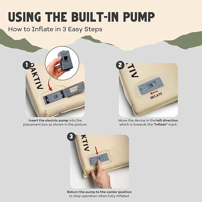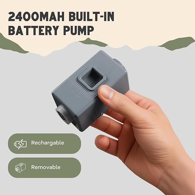 - Cordless Self Inflating Sleeping Pad: Equipped with a built-in pump, easily set up the WanderMate as a camping mattress pad or cot pad. Whether you're solo or with someone else, spend less time setting up, and more time exploring.
