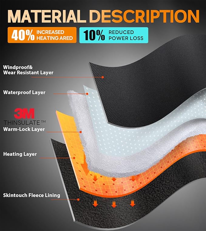 - 50% More Insulation: Heated gloves for work enhanced insulation for better warmth while maintaining flexibility.