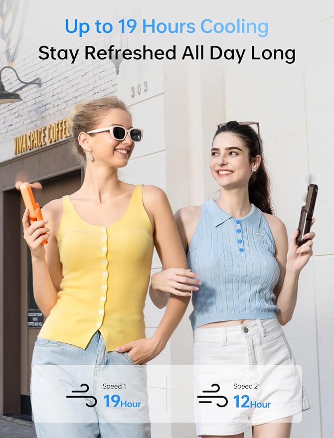 - 12-19 Hours Cooling Time: With up to 19 hours of cooling time on a single charge, this mini handheld fan ensures you stay refreshed during travel, concerts, and outdoor adventures; Conveniently rechargeable via USB