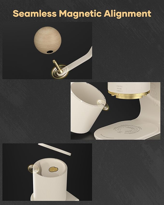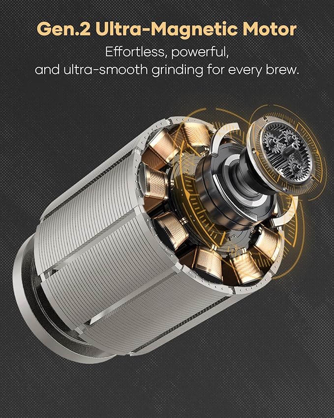 - Consistent Grinding Performance - The grinder features a professional-grade grinding core and 38mm high-carbon steel with titanium coating conical burrs. This design achieves more consistent grinding, near-zero retention, and fewer fines