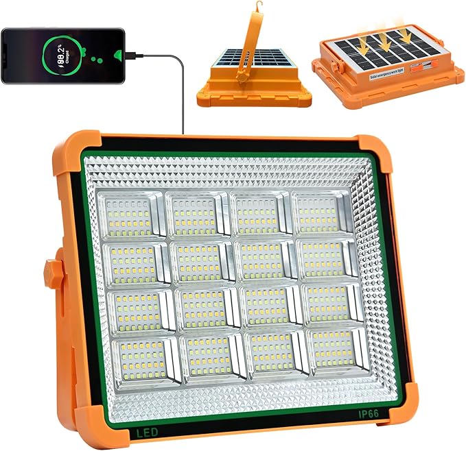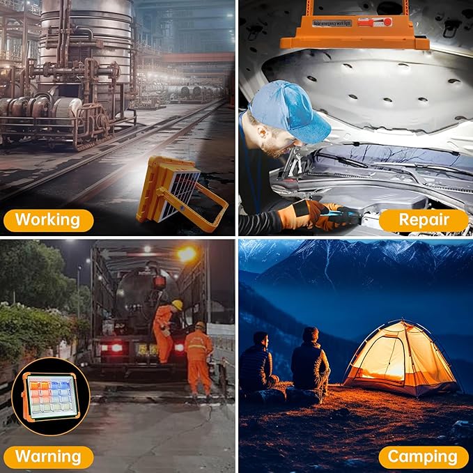 - Super Bright Infinitely Dimmable: Convenient work solar light with built-in 12000mAh ultra-large capacity battery; rechargeable work light can provide up to 10000 lumens output, long-press brightness can be adjusted between high and low, super bright mode can be used as a workshop, construction site, dock and so on.