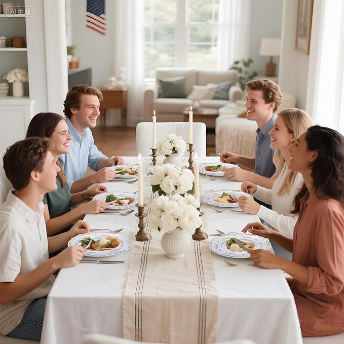 - Food-Safe & Premium Quality: Crafted from durable, BPA-free plastic. Enjoy peace of mind knowing your dinnerware sets are non-toxic and designed for direct food contact, ensuring a worry-free dining experience.Besides, The heavyweight napkins add a touch of luxury, making cleanup both practical and polished.