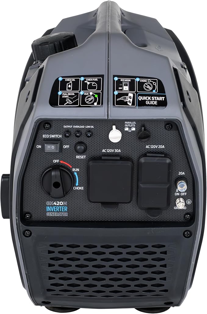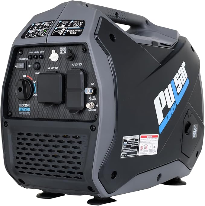 Pulsar 4,200W Portable Gas-Powered Quiet Inverter Generator for Home Emergency Backup, Parallel Capability, RV Ready, Long Run Time, GX420N