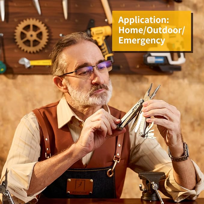 - VERSATILE 15-IN-1 DESIGN: Professional-grade multitool featuring needlenose pliers, wire cutters, scissors, saw blade, screwdrivers, can opener, file, rope cutter, and more in a compact 7-inch frame. This tool set features plier, replaceable hard-wire cutter, wire stripper, awl, bigger scissors, knife, ruler, can opener & bottle opener, files, strap cutter, 8-in-1 screwdriver bits (PH1+PH4, SP8+SP4, TT25+TT20, TT15+TT10, SL6+SL5, SL4+SL3, H5+H4, H3+H2.5). A powerful array of multi-functional tools are integrated into one