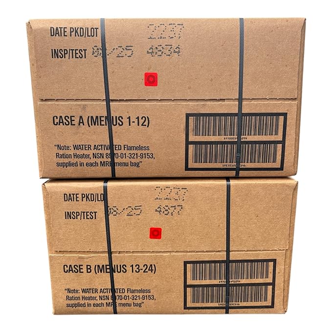 MRE Meals Ready to Eat A and B Cases 2025 inspection. Genuine Military Emergency Meals Camping (24 meals)