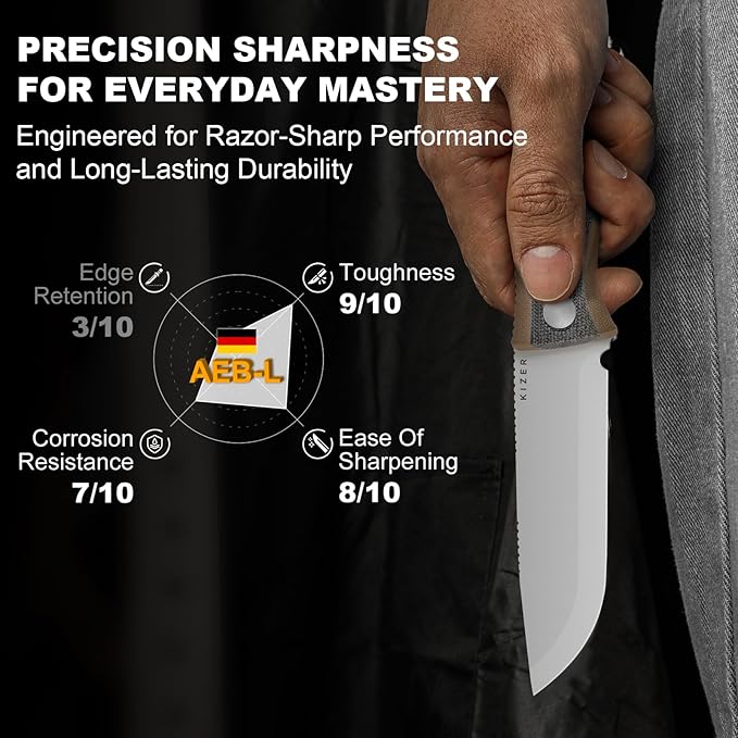 - Unstoppable Edge, Redefined the Blade Geometry: Crafted from AEB-L steel, this camping fixed blade knife offers razor-sharp edges, easy sharpening, and excellent corrosion resistance; Unique blade geometry ensures smooth, bind-free cuts, while the precision-ground tip doubles as a quick drill for leather and wood
