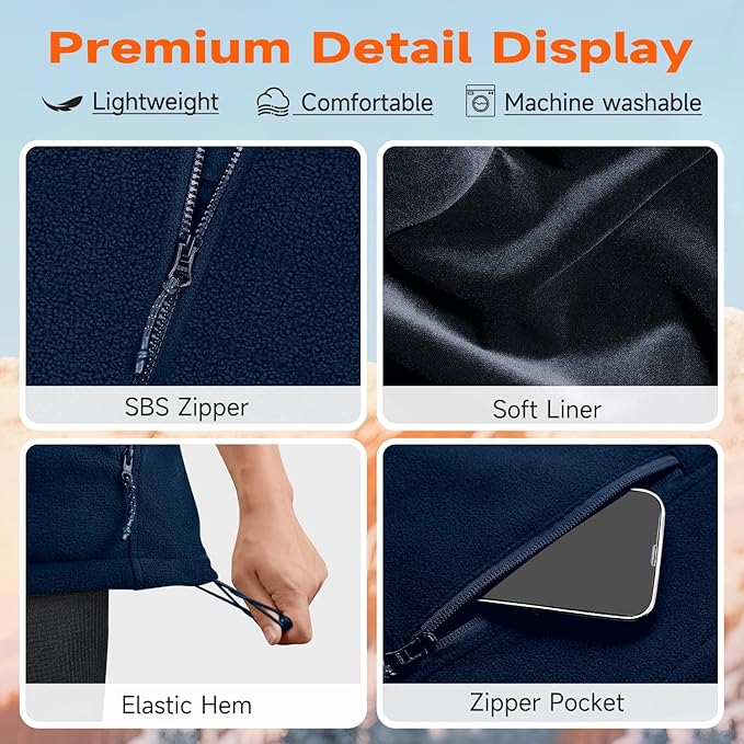 • [LIGHTWEIGHT FLEECE & FLEXIBLE FIT] :Crafted from soft fleece fabric for warmth and breathability without restricting movement. Equipped with a high collar, durable zipper closure, dual zippered pockets, and adjustable hem for custom comfort. Machine washable with included laundry bag—ideal for daily wear in outdoor or indoor cold conditions.