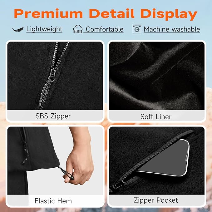- [DURABLE FLEECE & ALL-DAY COMFORT] :Made from soft yet durable lightweight fleece, this heated vest offers warmth without sacrificing mobility. Designed with a high stand collar, smooth zipper closure, two secure zippered pockets, and an adjustable hem for a personalized fit. Machine washable with included laundry bag, built for daily wear in work or outdoor settings.