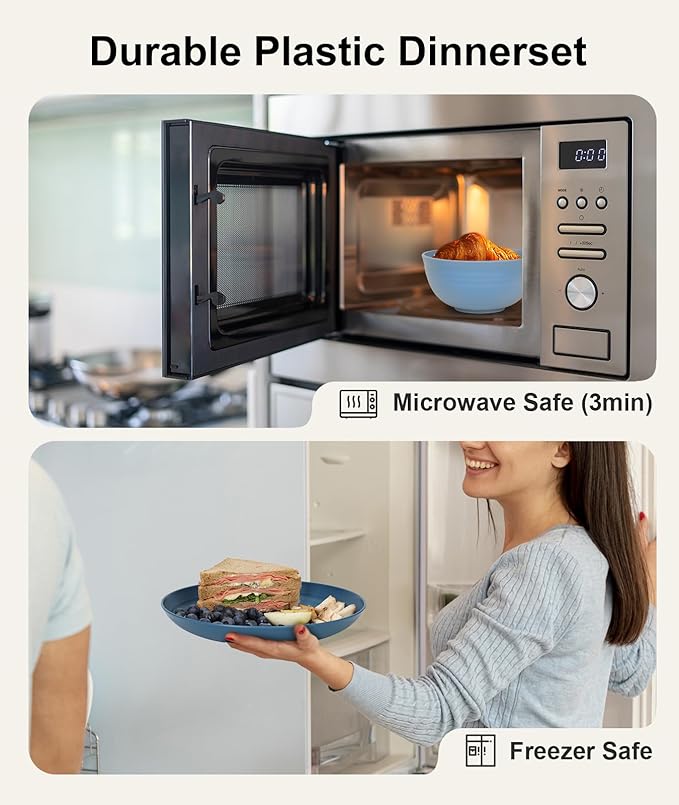 - Dishwasher and Microwave Safe: These plates and bowls sets can also go in the fridge or freezer. Offer convenient cleanup and reheating, making them ideal for everyday use