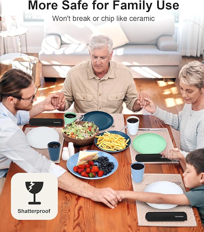 - Durable and Kid-Friendly: Nearly unbreakable, shatterproof plastic dinnerware set with raised edges, resistant to chipping, scratches, and wear-related damage. Ideal for camping, RVs, beach houses, and safe for toddlers and children