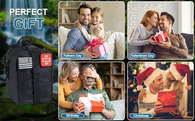 - 【Thoughtful Gift for everyone】 All of the items have been tested to ensure they can withstand even the toughest emergencies and conditions.This survival first aid kit is suitable for daily household, outdoor activities, hurricane preparedness. It’s a first aid kit for backpack, car, that everyone deserves to own. Great birthday Christmas holidays gift ideas for men, women, kids.