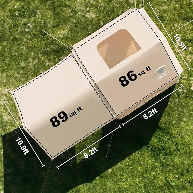 - Large Inflatable Camping Tent 6-8 People - Spacious Interior with a 10.5ft x 8.2ft footprint and a 6.9ft center height, this tent offers ample space for adults to move freely without bending. Enjoy a comfortable and roomy camping experience!