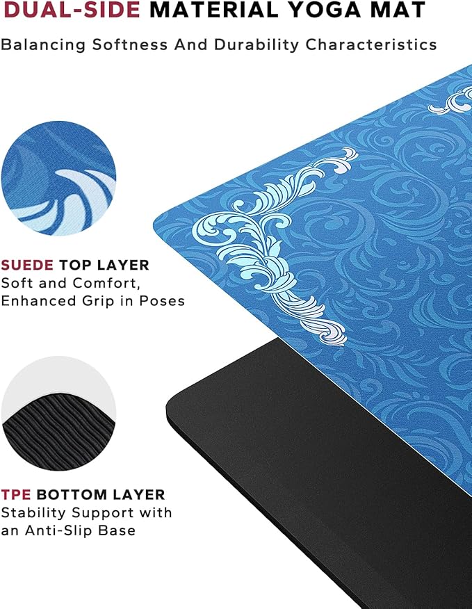 HAPBEAR Large Yoga Mat - 72x36'' Wide workout Mat, Suede Surface with TPE Layer, 1/4'' Thick for Cushioned Support, Non-Slip Yoga Mat, Suitable for Yoga, Pilates, Home and Gym Workouts