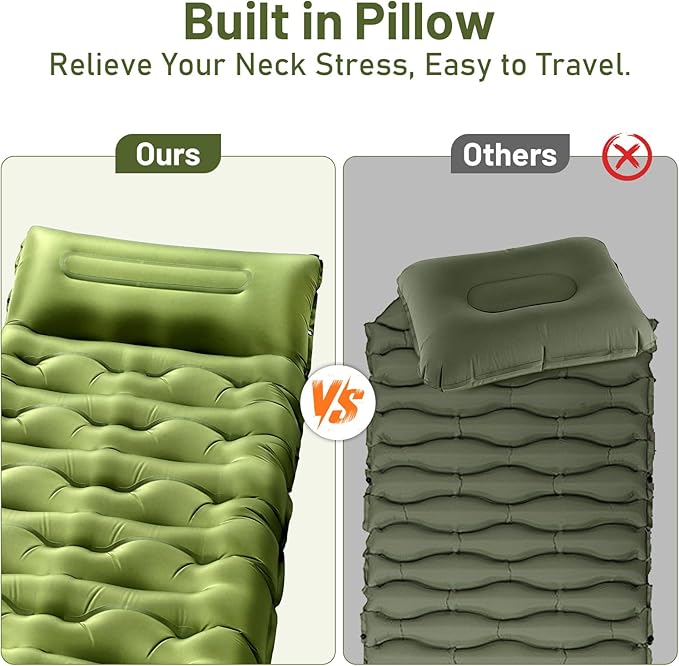 - 【Silent Comfort】Made with 200T pongee for a smooth, quiet feel, plus TPU lining for enhanced durability. This sleeping mat won’t squeak like nylon when you turn and twist. Built for peaceful sleep-Ideal for camping, car trips, or backpacking, where restful sleep matters most.