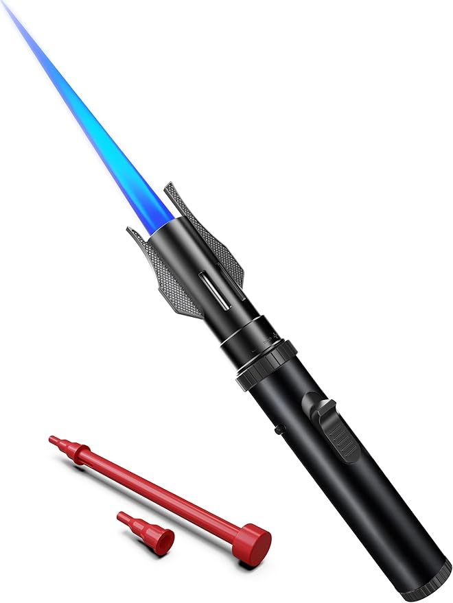 - Long Lighter, Multi-Purpose Lighter: This Long lighter is perfect for the kitchen, fireplace, office, tool shed, or backpack. Whether used to light candles and fireworks at gatherings with friends, ignite a fireplace on cold days, host a backyard barbecue, or light a campfire during camping, it delivers an excellent experience; The oversized capacity Tank allows this Blow Torch to sustain burning for over 10 minutes, Especially suitable for professional craftsmen, repairers, or seasoned outdoor adventurers handling tasks requiring continuous heating, such as metal welding pre-heating, pipe sealing treatment, igniting damp firewood